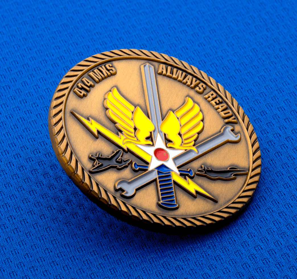 Creating a challenge coin with color on both sides makes it easy to recreate logos, emblems, and badges with incredible detail. We include up to seven free colors on each side and have options to upgrade to translucent, glitter, or metallic enamels.