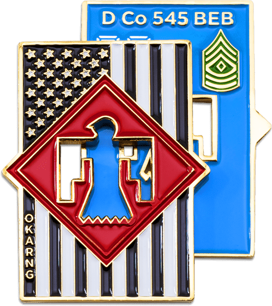 Going beyond the traditional round challenge coin, our customers have designed coins shaped like jet fighters, helmets, maps, and so much more. Our manufacturing team creates unique coin molds for each project and has the ability to make cut outs to help you form any shape at any size!