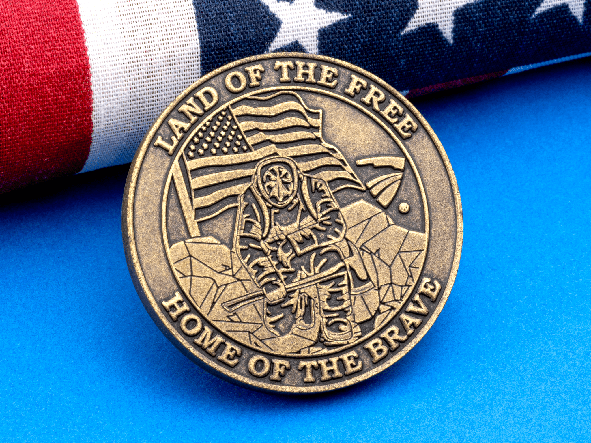 Die struck challenge coins made in the USA look and feel the same as traditional challenge coins. The only difference is that they’re made right here in the United States! Antique brass and antique steel are the most popular plating options, and we also offer colored Cerakote™ finishes.