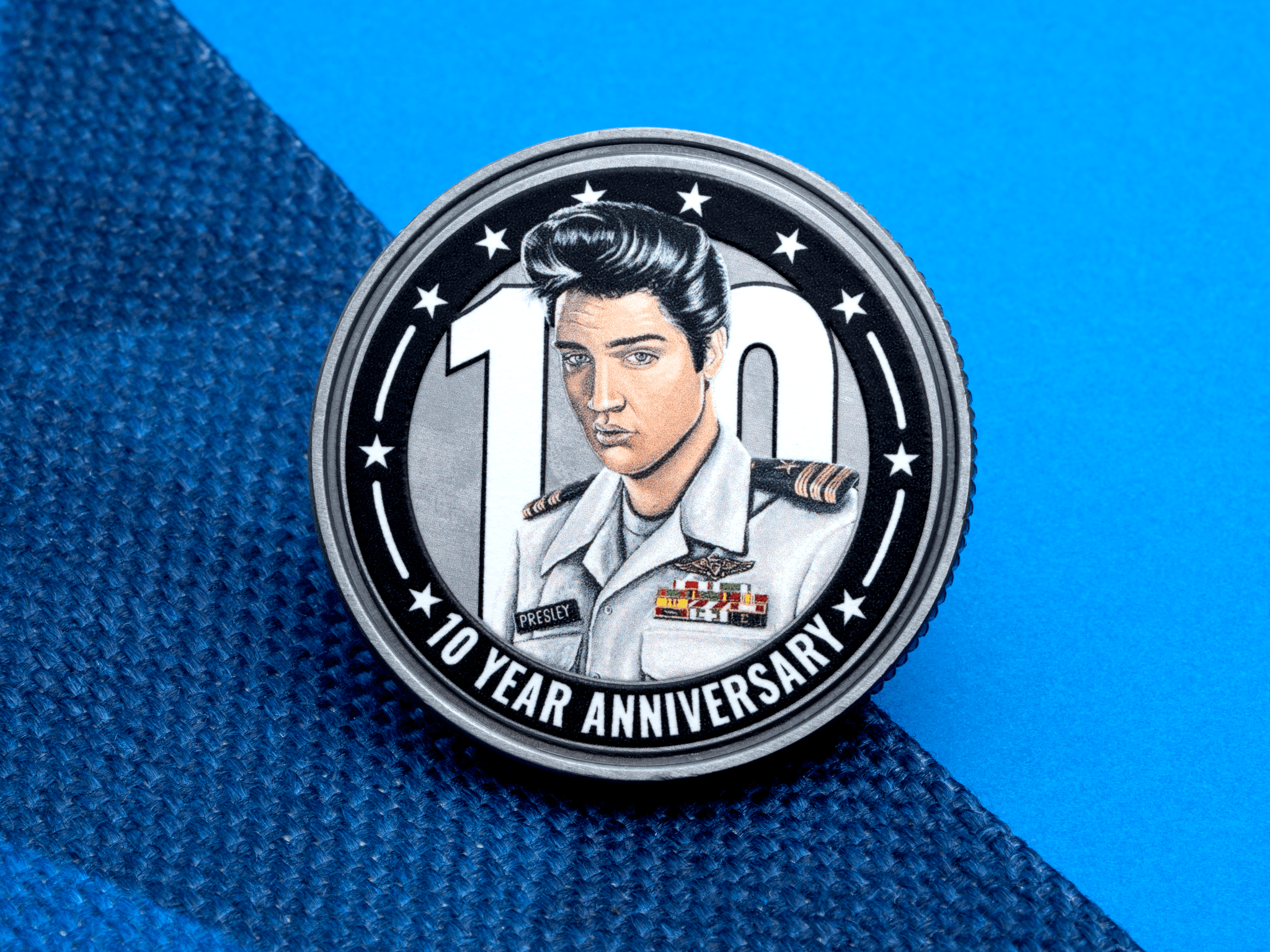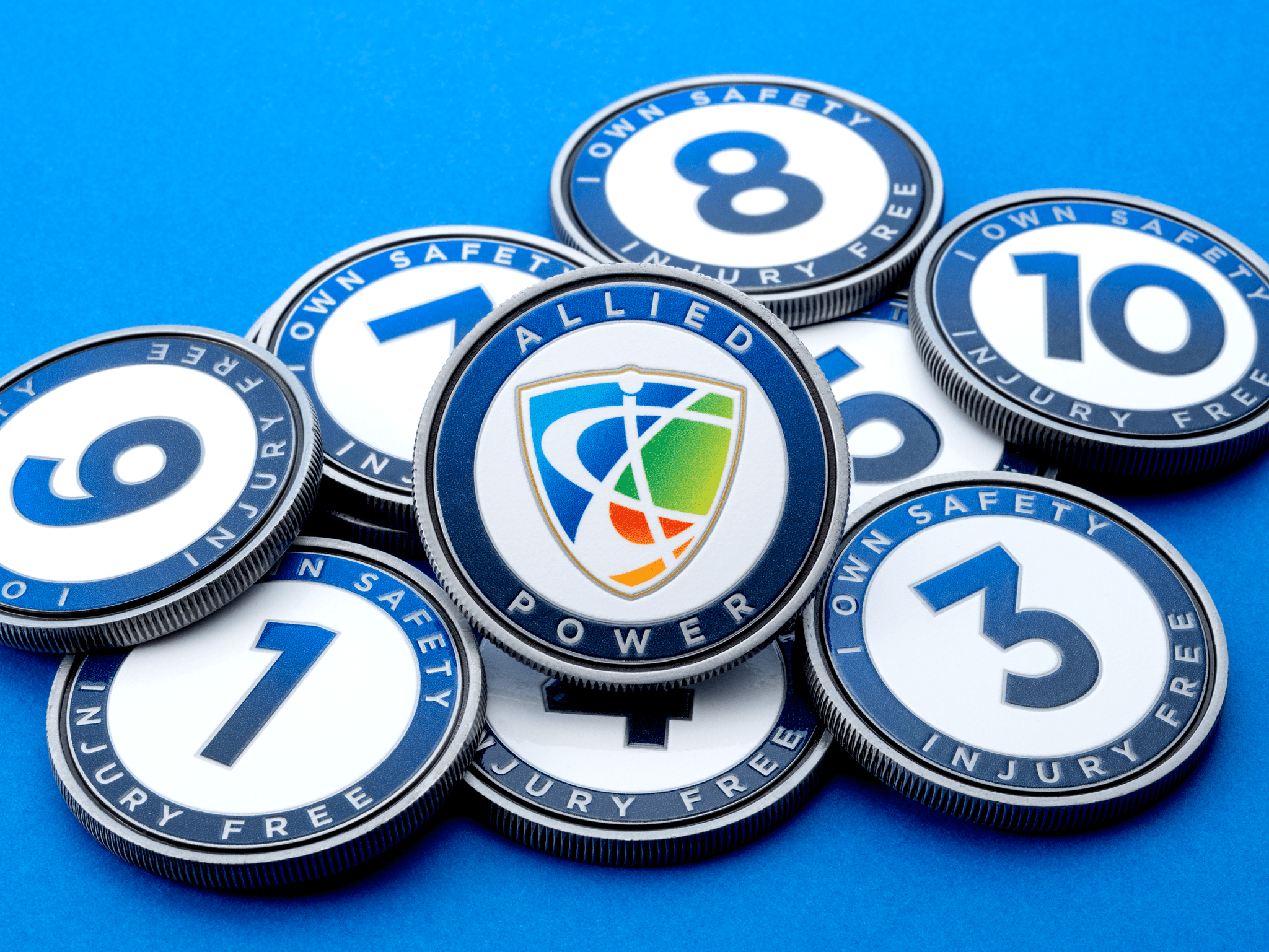 Simulated enamel coins are made from solid metal and are available with antique gold or silver plating. Layers of color are applied directly to the metal surface of the coins to create a depth and texture similar to a traditional challenge coin.