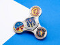 Una moneda con spinner es una moneda de desafío personalizada con una pieza móvil incorporada que gira sobre un eje de pin. La pieza giratoria se coloca dentro de un recorte en la moneda (spinner interno) o sobre la cara de la moneda (spinner flotante). Al impulsarla, el elemento gira libremente, haciendo que la moneda sea interactiva y mucho más atractiva que una moneda de desafío estándar.