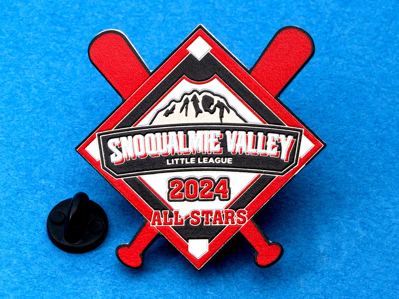 Our American-made baseball trading pins have incredibly high levels of detail thanks to the color printing manufacturing process. Colors are layered on the surface of the pins, allowing for bold designs with color gradients. If your team needs pins fast, we can manufacture a full order in just two weeks!