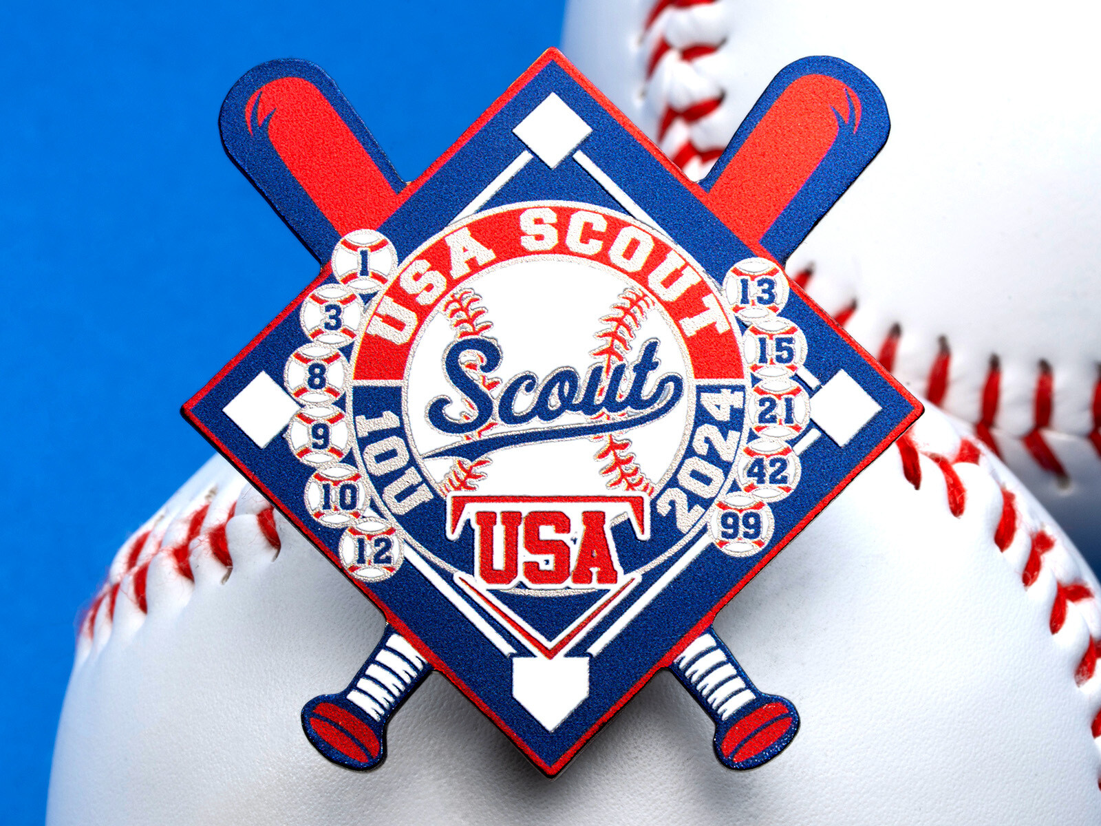 USA Rush baseball trading pins are made in America using full-color offset printing — the same bold, photo-quality process as our standard rush pins, just focused on baseball. From Little League to Cooperstown to travel ball, these pins deliver vivid colors, smooth gradients, and unlimited detail.