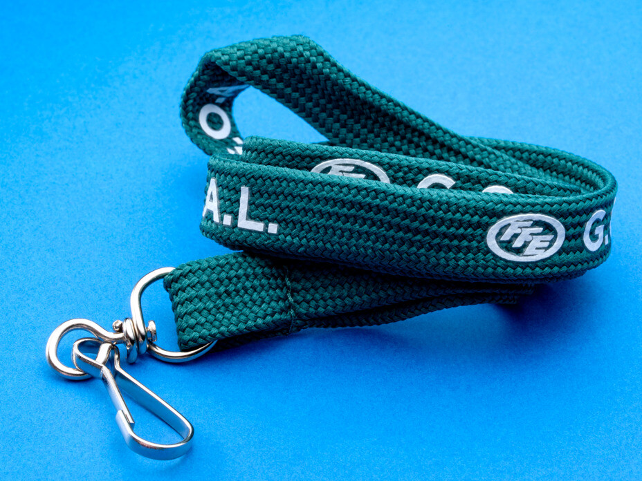 Thanks to a tight weave pattern, woven lanyards have a smooth polyester surface with bold detail. This type of lanyard is perfect for designs with bright colors and large text, and the durable material will ensure the lanyards don’t fray or fade over time.