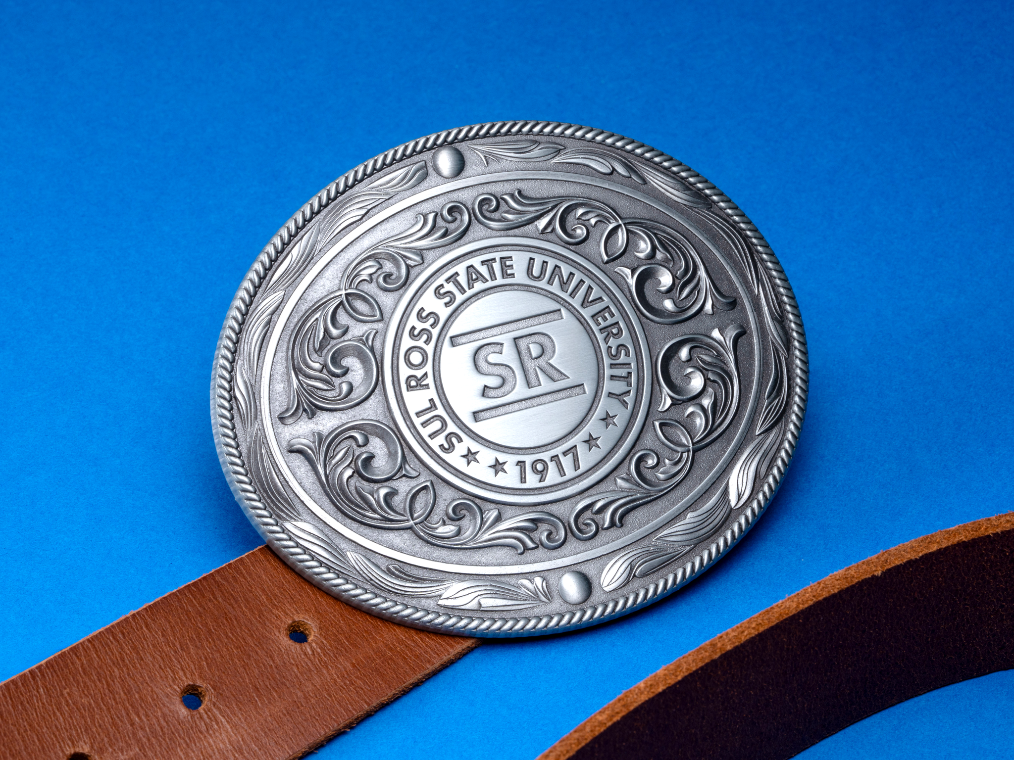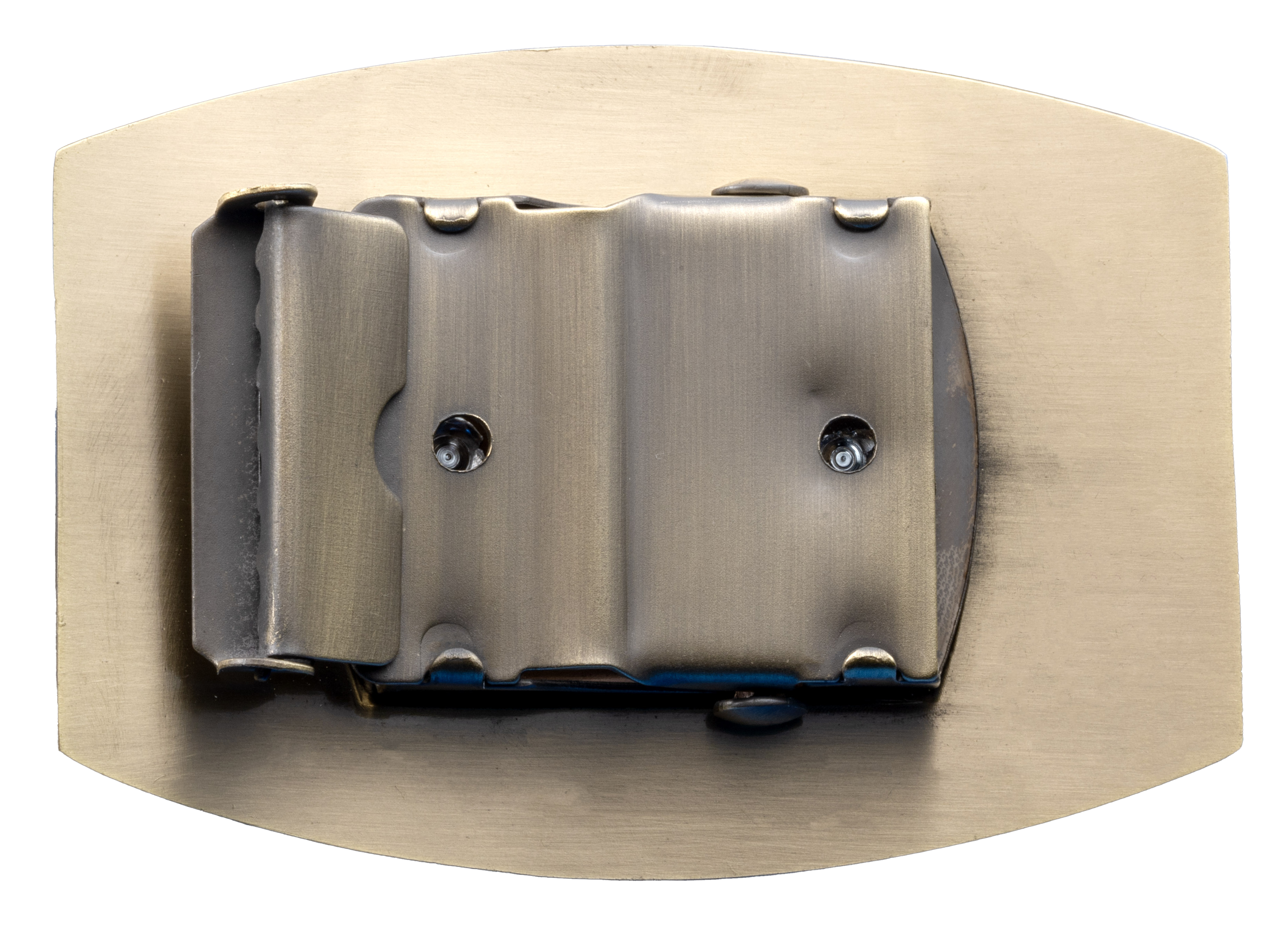 Western belt buckles are built for leather belts with a classic hinge & hook attachment that snaps on and off for easy swapping between straps. Antique plating options give these buckles a weathered, vintage character that fits right in at rodeos, cowboy events, ranch award ceremonies, and western competitions. Whether you go with a full-color design or an all-metal die struck finish, western buckles carry a distinctive rugged appeal.