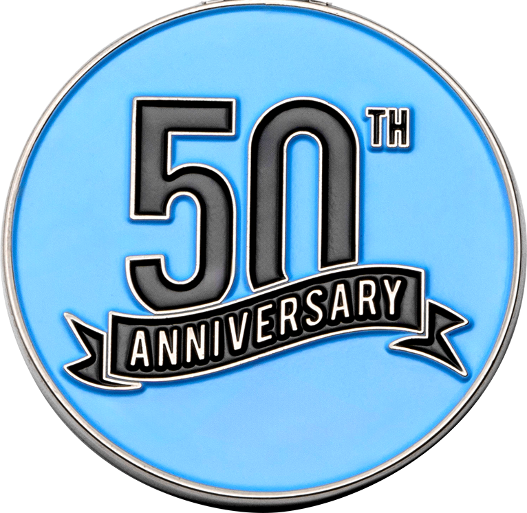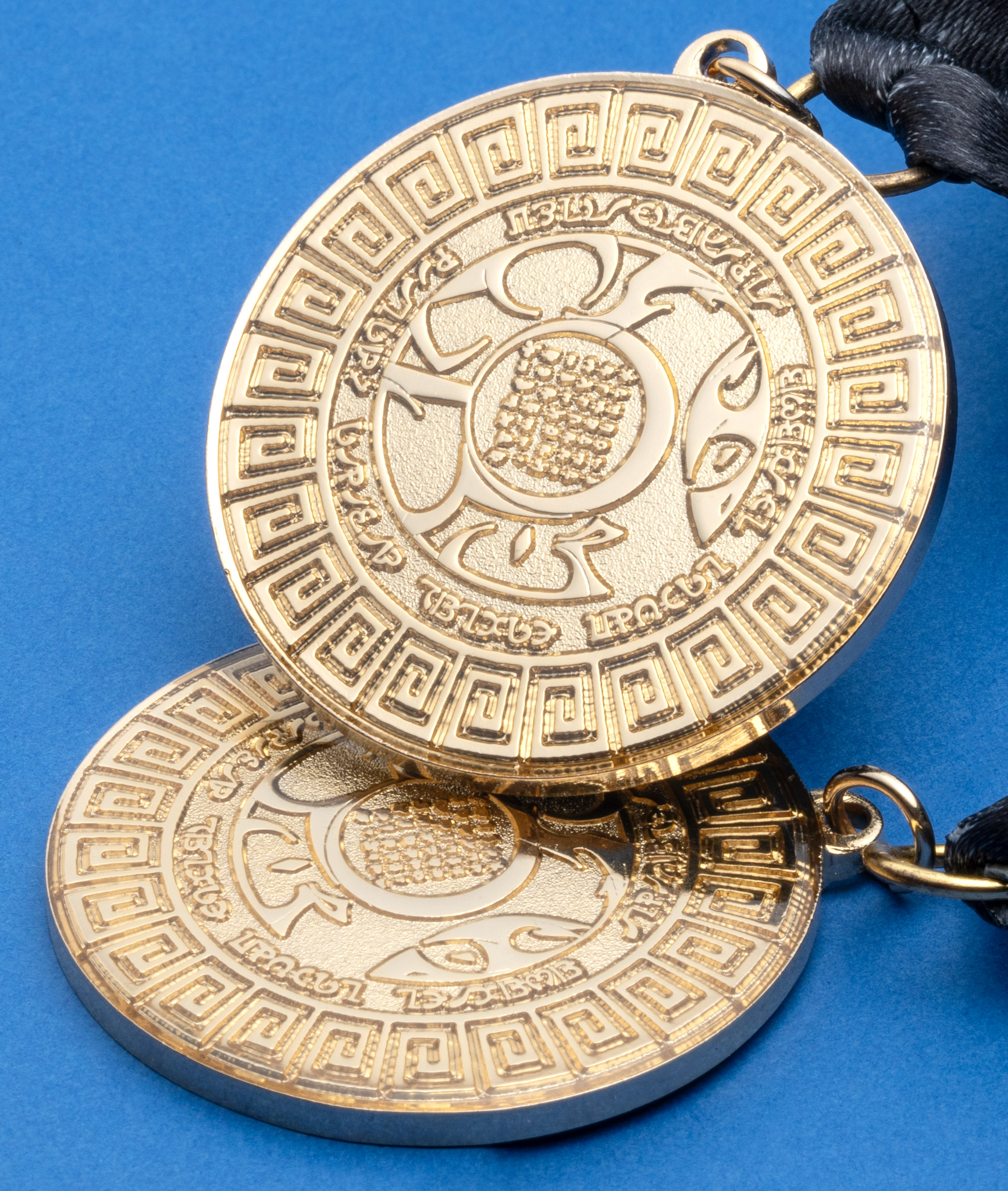 Die struck medals are created using the traditional die striking process. This involves stamping a deep and detailed impression of your artwork into a blank metal surface using a custom-made die. The finished medals are available in a variety of high polished, antique, and colored metal options.