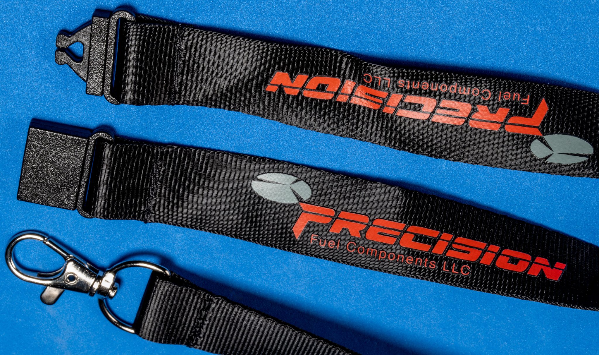 Heat transfer lanyards allow for realistic detail and full-color artwork. The manufacturing process involves creating a digital version of your design and then using heat and pressure to transfer the design onto your lanyards. If you need a design with detailed logos, brand emblems, and small text, these are the best lanyards for the job.