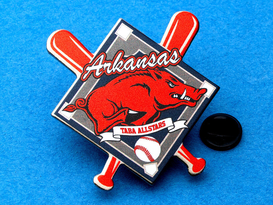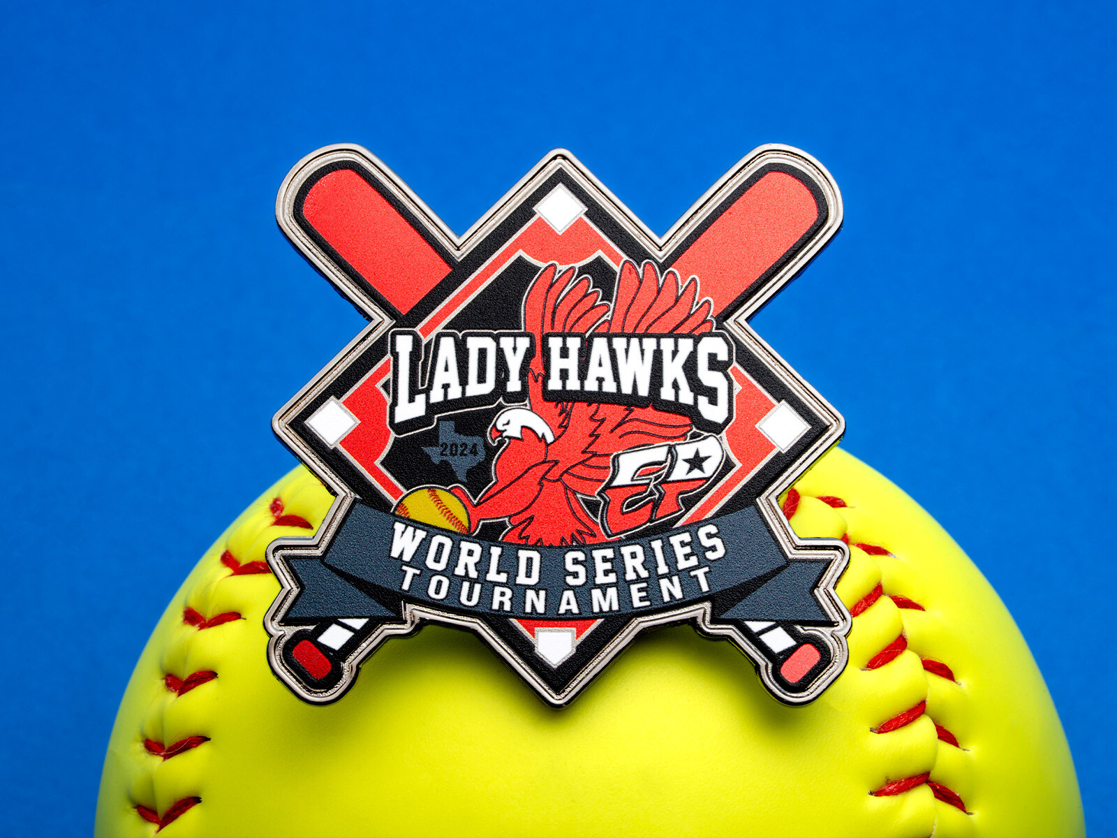 Trading pins are custom-designed collectible pins that sports teams — especially baseball and softball teams — create each season. Players trade them with opponents at tournaments, Cooperstown events, and throughout the season. Each pin is unique to the team, featuring the team name, mascot, sport, colors, and often player numbers.